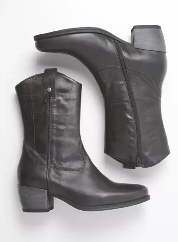- Pasvorm: Geschikt voor gemiddelde en vollere voeten. Dankzij de spitse neus is er (juist) extra ruimte voor de tenen. De laars is ook geschikt voor voeten met een hogere wreef. Voor de volle voet is de suède variant het meest geschikt (richtlijn breedtemaat G-H)