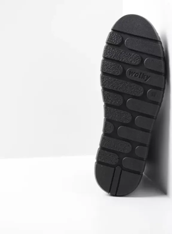 Wolky’s New Wave heeft iets speciaals: de zool lijkt heel plat, maar schijn bedriegt. Door de ingebouwde kuip ligt de hiel iets hoger. Hierdoor is de afwikkeling van de voet makkelijker, wordt de voet goed gestabiliseerd én is je houding beter. Nog een extra voordeel: door de ronde leest is er lekker veel ruimte voor de (hoge) wreef en tenen. Heb je volle voeten? Dan kom je ook prima weg met deze boot.