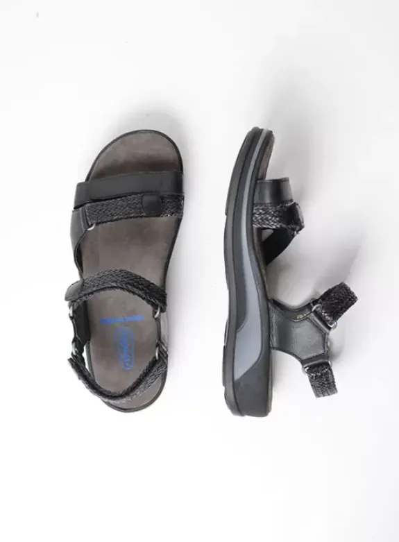Alles om comfortabel van A naar B te komen, vind je terug in Wolky’s Acula. Deze sandaal is optimaal verstelbaar dankzij de vier klittenbandsluitingen: twee op de voorvoet, een op de wreef en een op de hiel. Het suède dekje op het voetbed zorgt ervoor dat de sandaal ultra-zacht aanvoelt. Het onderwerk is gemaakt van PU en in combinatie met het stevige (vaste) voetbed zorgt dit voor een goede demping. Hierdoor kun je moeiteloos langere afstanden afleggen. Heb je de gevlochten bandjes al gezien? Die geven de sandaal een chique uitstraling. Dit vlechtmateriaal zit alleen bovenop. Het gedeelte dat je voeten raakt is van zacht leer. Je hoeft dus niet bang te zijn voor een vlechtwerk in je huid!